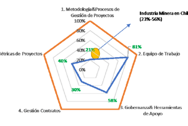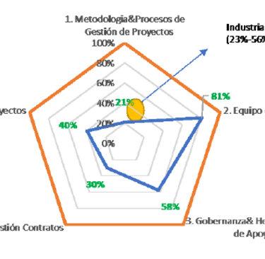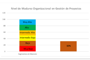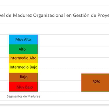 The results revealed an overall maturity range from 25% ("Low" level) to 59% ("Upper Intermediate" level), confirming both the heterogeneity and the areas of opportunity. Strengths were identified in the "Project Teams" domain in several divisions, while "Project Metrics" was generally a weaker area.